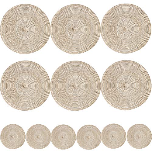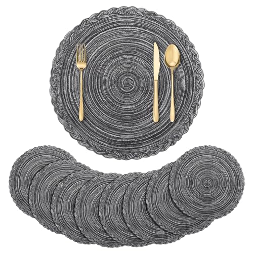 TEERFU 12 st runda vävda bordsunderlägg, bordstabletter och underlägg set – halkfria, värmebeständiga tvättbara serviser runda matbordsmattor