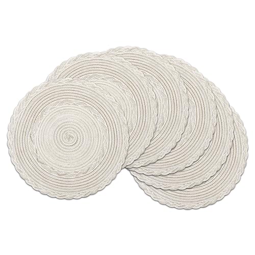 SHACOS Runda Bordstabletter Uppsättning av 6 Bordsunderlägg för Matbord Tvättbara Värmetåliga Set of 6 Elfenbensvit