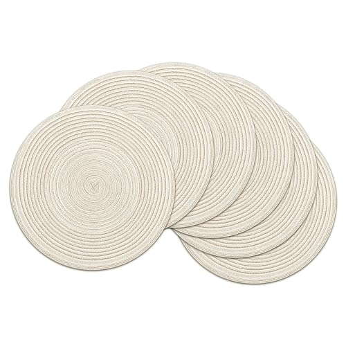 SHACOS Runda Bordstabletter Uppsättning av 6 Bordsunderlägg för Matbord Tvättbara Värmebeständiga Set of 6 Mjölkig