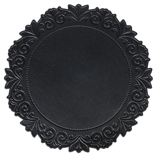 Set med 6 runda svarta PVC-bordsunderlägg blomdekor