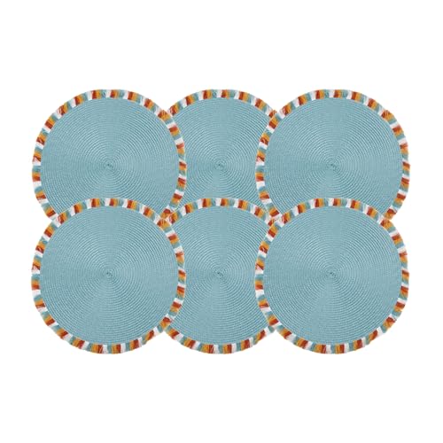 Cofan 6-pack individuella bordstabletter | runda tallrikar | Färg: blå | färgglada frans bordsunderlägg | Diameter: 38 cm