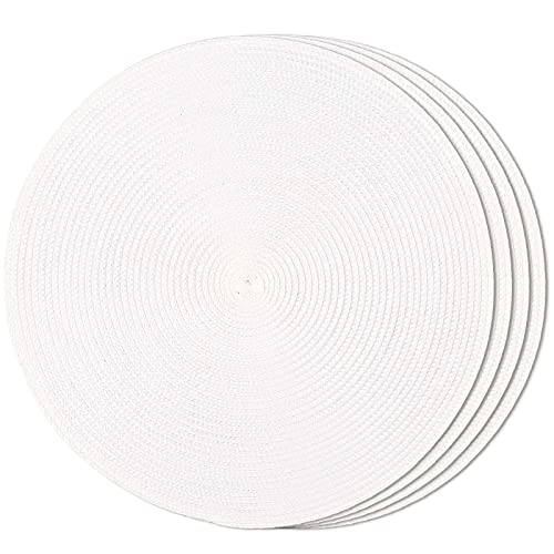 FunWheat Bordstabletter, runda, flätade, uppsättning om 4 bordsunderlägg för matbord, vävda, tvättbara, halkfria, 38 cm, vit, 4 stycken