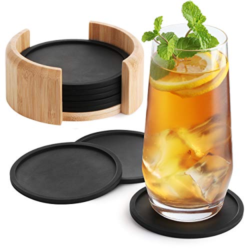 Sidorenko Silikonunderlägg runda för glas – set om 8 inkl. låda – design glasunderlägg i svart för drycker, koppar, bar, glas – bordsunderlägg silikonunderlägg