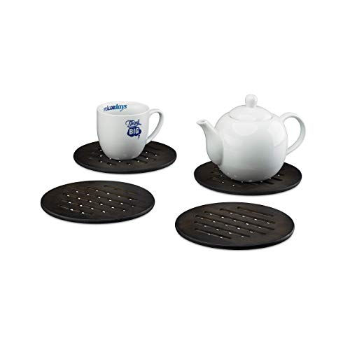 Relaxdays 10023266, mörkbrun bordsunderlägg set om fyra underlägg, bambuunderlägg för gryta, runda bordshållare 20 cm Ø