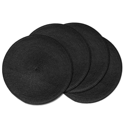 AHHFSMEI Runda flätade bordstabletter set med 4 runda bordsmattor för matbord naturligt vävda värmebeständiga bordsunderlägg 35 cm (svart)