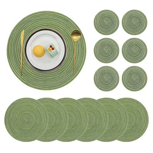 AHHFSMEI Runda flätade bordstabletter 38 cm runda bordsmattor för matbord vävda värmebeständiga bordsunderlägg set med 6 (dimgrön)