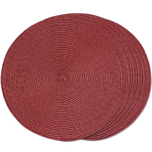 FunWheat Bordstabletter, runda, flätade, uppsättning om 6 bordsunderlägg för matbord, vävda, tvättbara, halkfria, 38 cm, vinröd, 6 stycken