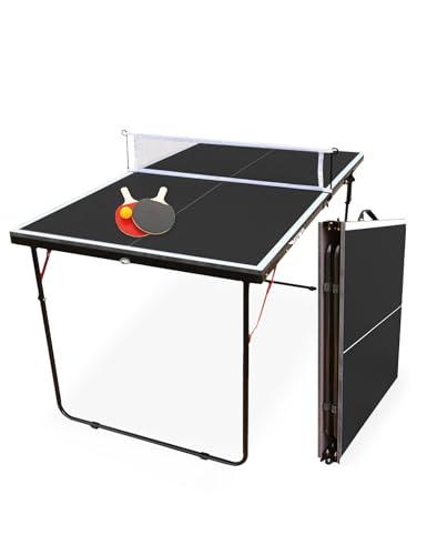 MUWO Vikbar minibordtennisplatta, robust stålram. Kompakt, med bärhandtag. 137 × 76 cm, inklusive nät, två racketar och bordtennisboll (svart)