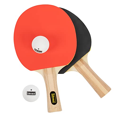 Idena 40203 – 4-delat bordtennisset för avancerade, med 2 bordtennisracket och 2 vita 1-stjärnbollar, förpackade i en bärväska