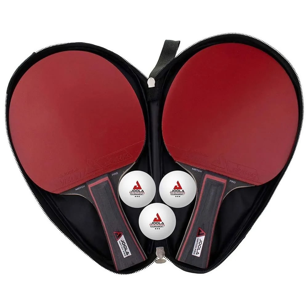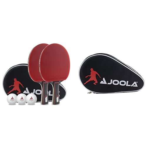 JOOLA 54821 Bordtennisset, 6 delar, Röd & JOOLA 80505 bordtennisracket fodral ficka dubbel bordtennisfodral för 2 vattenavvisande bordtennisväska, svart/röd, 28 x 17 x 4 cm