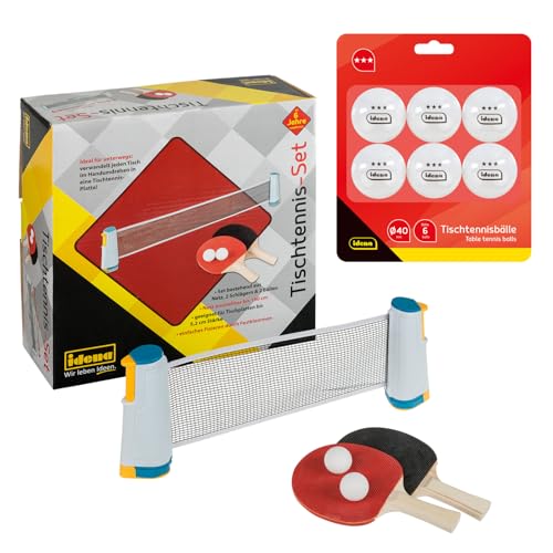Idena 90958 – bordtennisset med nät, två slev och två bollar, inkl. 6 bordtennisbollar i 3 stjärnor, kvalitet, vit, diameter 40 mm, för enkel montering på bordsskivor
