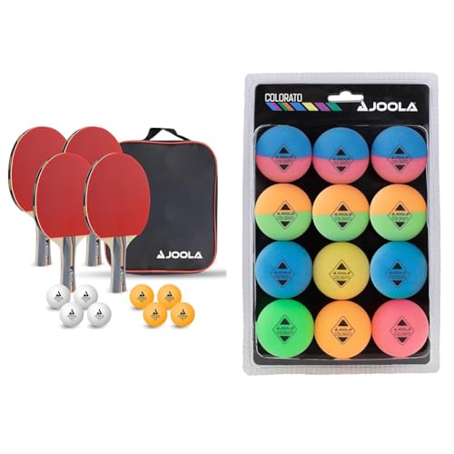 Joola 54825 Bordtennisset, En Storlek, Flerfärgad & Joola Bordtennisbollar, Colorato, Flerfärgad, Paket med 12