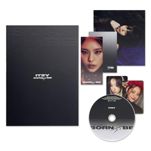 ITZY - [BORN TO BE] (STANDARD Ver. - BLACK Ver.) Photobook + Lyric Book + Eyes Photocard + CD-R + Photocard + Mini Folding Poster + Mood Film + Poster + Postcard + 2 Pin Badges + 4 Extra Photocards