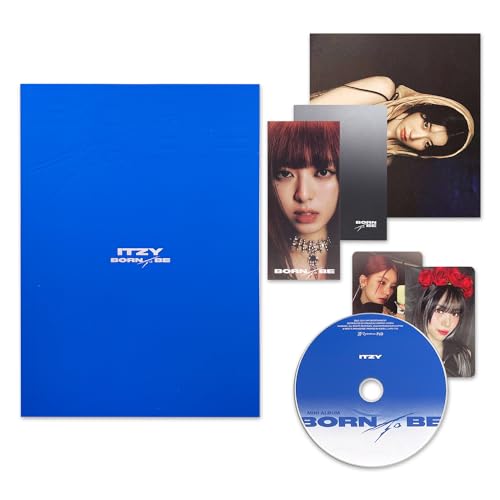 ITZY - [BORN TO BE] (STANDARD Ver. - BLUE Ver.) Photobook + Lyric Book + Eyes Photocard + CD-R + Photocard + Mini Folding Poster + Mood Film + Poster + Postcard + 2 Pin Badges + 4 Extra Photocards