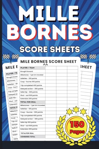 Milles Bornes Score sheets: Score Logbook for Milles Bornes Card Game - Record Hazards, Miles, and Winning Scores