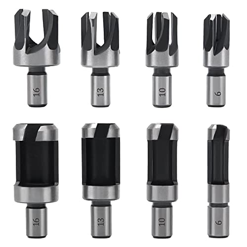 Fixinus 8 stycken träplugg fräs borrset, tapp fräs kolstål plugg plugg plugg borr set plugg hål fräs 6 mm/10 mm/13 mm/16 mm för handborr träbearbetning