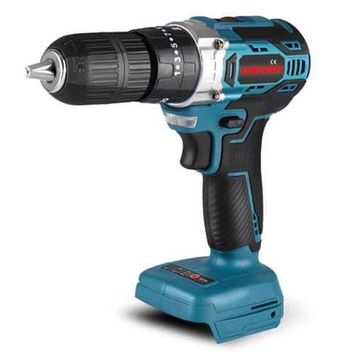 ONEVAN Sladdlös skruvdragare, borstlös, kompatibel med Makita 18 V, 25 + 3 sladdlös slagborr, 20 V 45 NM borr, elektrisk skruvmejsel, batteriborr och skruvmejsel för hem, gör-det-själv (utan batteri)