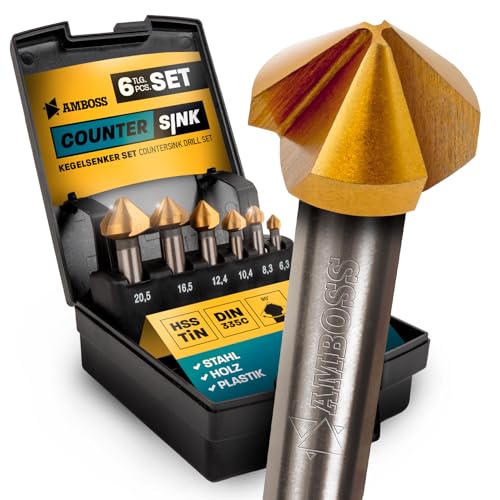 Avsmalnande försänknings-set 6 delar 6,3–20,5 mm HSS TiN/DIN 335C/städ verktyg försänkare för järn, stål, metall, icke-järnmetall, trä, plast/professionell försänkt borr för borrmaskiner och sladdlösa