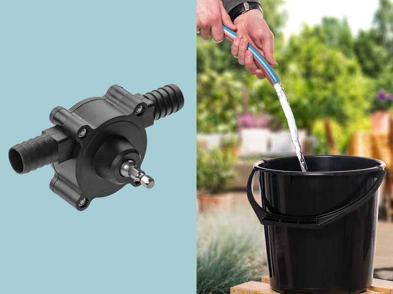 Borrmaskinspump Jabsco Drill Pump 17250-0003, 13 l/min, 13 mm slang + adaptrar för 3/4" GHT gänga