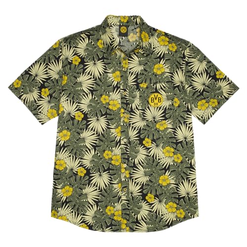 Borussia Dortmund BVB Skjorta Flora – officiell fanartikel, sommarkollektion, blommigt mönster, 100% bomull, gul BVB-emblem storlek XXL, flerfärgad, XXL