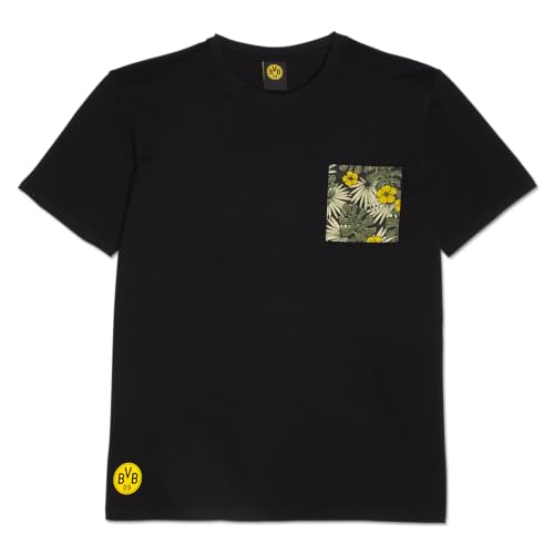Borussia Dortmund BVB T-Shirt Flora – officiell fanartikel, sommarkollektion, blommigt mönster, 100% bomull, gul BVB-emblem storlek 3XL, svart, 3XL
