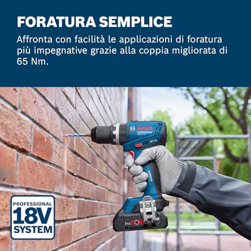 Bosch Professional 18V System sladdlös borrskruvdragare GSB 18V-65 (inkl. 2x GBA 2.0Ah, GAL 18V-40-laddare, 1x tillbehörssats för skruvdragare, L-Case)