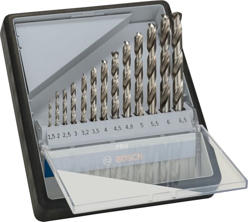 Bosch 13x PRO Metal HSS-G Twist Drill Bit Set (for Non-ferrous metals, Steel, Ø 1,5, 2,0, 2,5, 3,0, 3,2, 3,5, 4,0, 4,5, 4,8, 5,0, 5,5, 6,0, 6,5 mm, Professional Accessory Rotary Drill/Drivers)