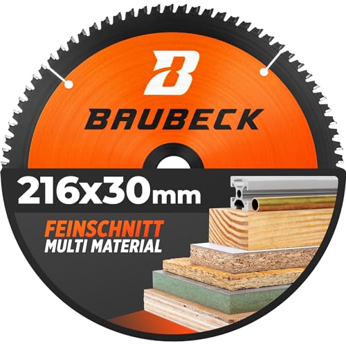 BAUBECK Sågblad 216 x 30 - multimaterial fint snitt - cirkelsågblad 216 x 30 för trä, aluminium och mycket mer Sågblad 216 kompatibel med Metabo KGS 216, Bosch GCM 8 och mycket mer