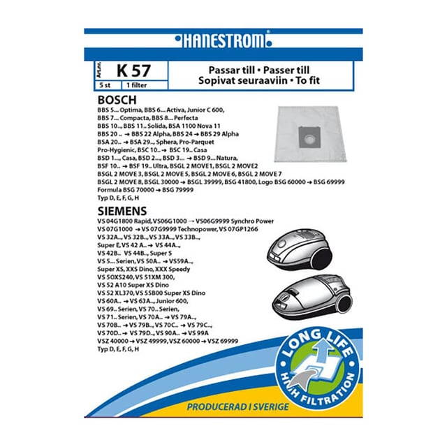 Dammsugarpåse Bosch Bsgl2Move/Siemens Vsz 4