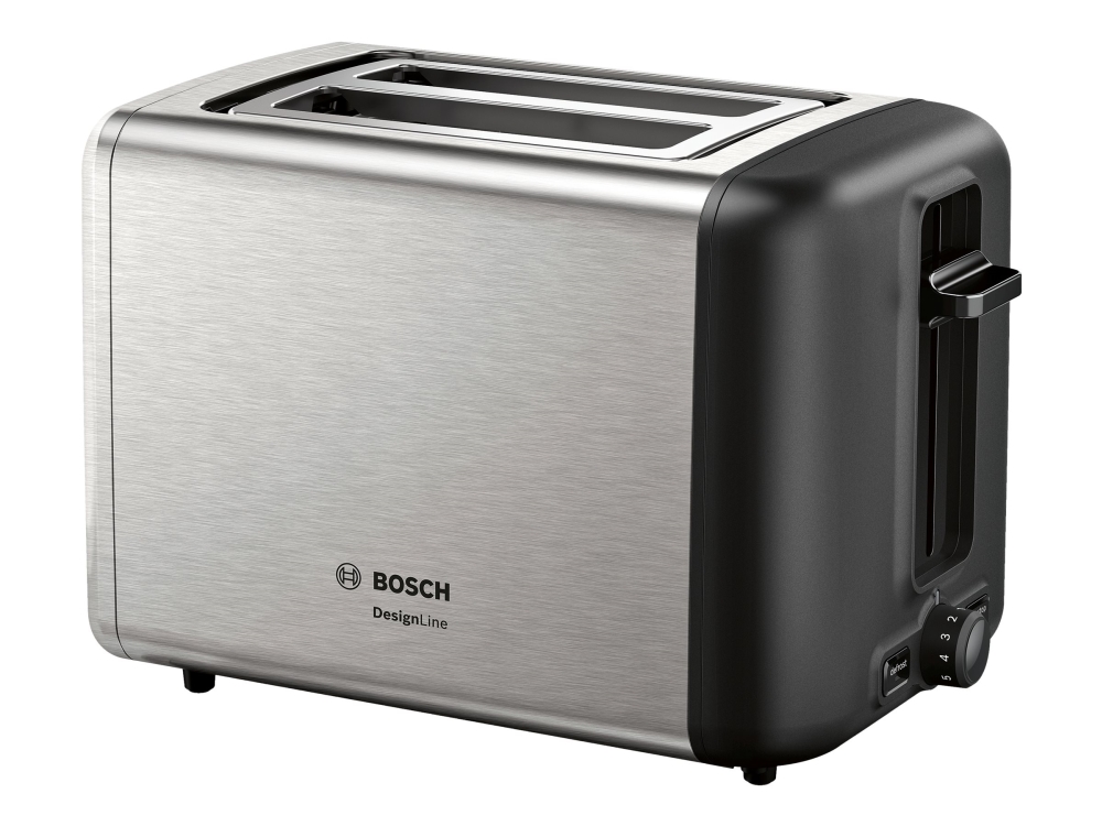 Bosch Designline Tat3p420 - Brödrost - 2 Skiva - 2 Kortplatser - Rostfritt Stål/Svart