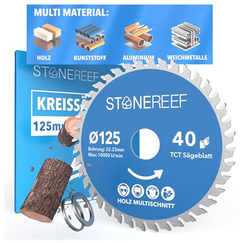 Sågblad 125 x 22,23 - Cirkelsågblad [inkl. adapter till borrning 20 &16 mm], kompatibel med vinkelslip från Bosch, Makita etc. - Sågblad cirkelsåg, nagelsäker - för trä