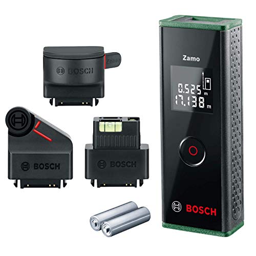 Bosch laseravståndsmätare Zamo-sats med tre adaptrar i premiumförpackning (enkel och exakt mätning upp till 20 m, tredje generationen)