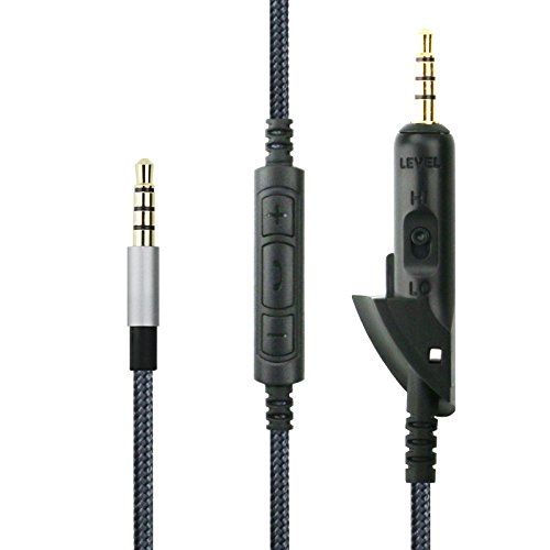 Surfplatta ljudkabel, 1,2 m nylonflätad AUX-sladd med inbyggd mikrofon och fjärrkontroll volymkontroll för Bose QC15 QuietComfort 15 hörlurar och Samsung, Huawei Android-telefoner