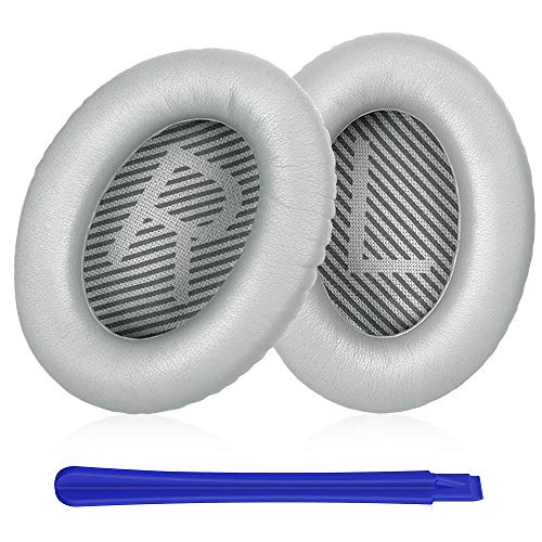 Geekria Ersättande öronkuddar för Bose New QuietComfort, QC 45/35II/ 35IIGaming/ 35/25/ 15/ SE, AE 2/2i/2w, SoundLink AE2-hörlurar, öronkuddar med videoguide (silvergrå)