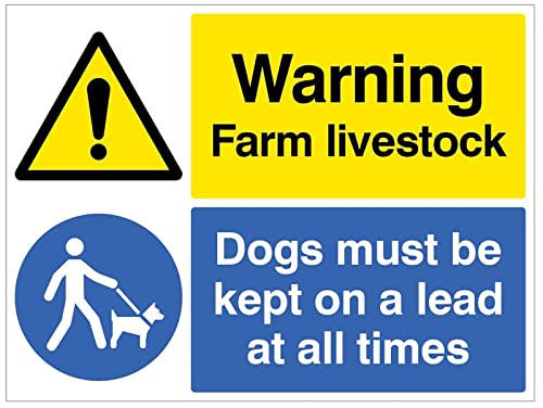 Varning Farm boskap hundar måste hållas på bly (halvstyv PVC-säkerhetsskylt)