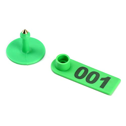 QWORK Nötkreatur öronetiketter, 001-100 nummer plast boskap örontaggar för märkning får get ko gris gård djurtillbehör (grön)