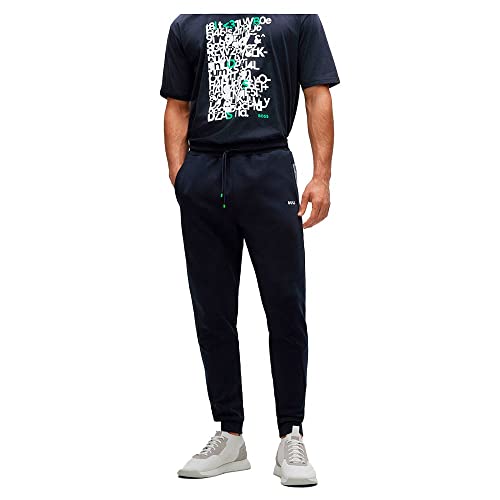BOSS Hadiko joggingbyxor för män av stretchbomull med logotyptryck, Mörkblå402, XS