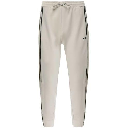 BOSS Hadiko för män 1 joggingbyxor av bomullsblandning med sidoränder, Ljus/pastellgrå, M