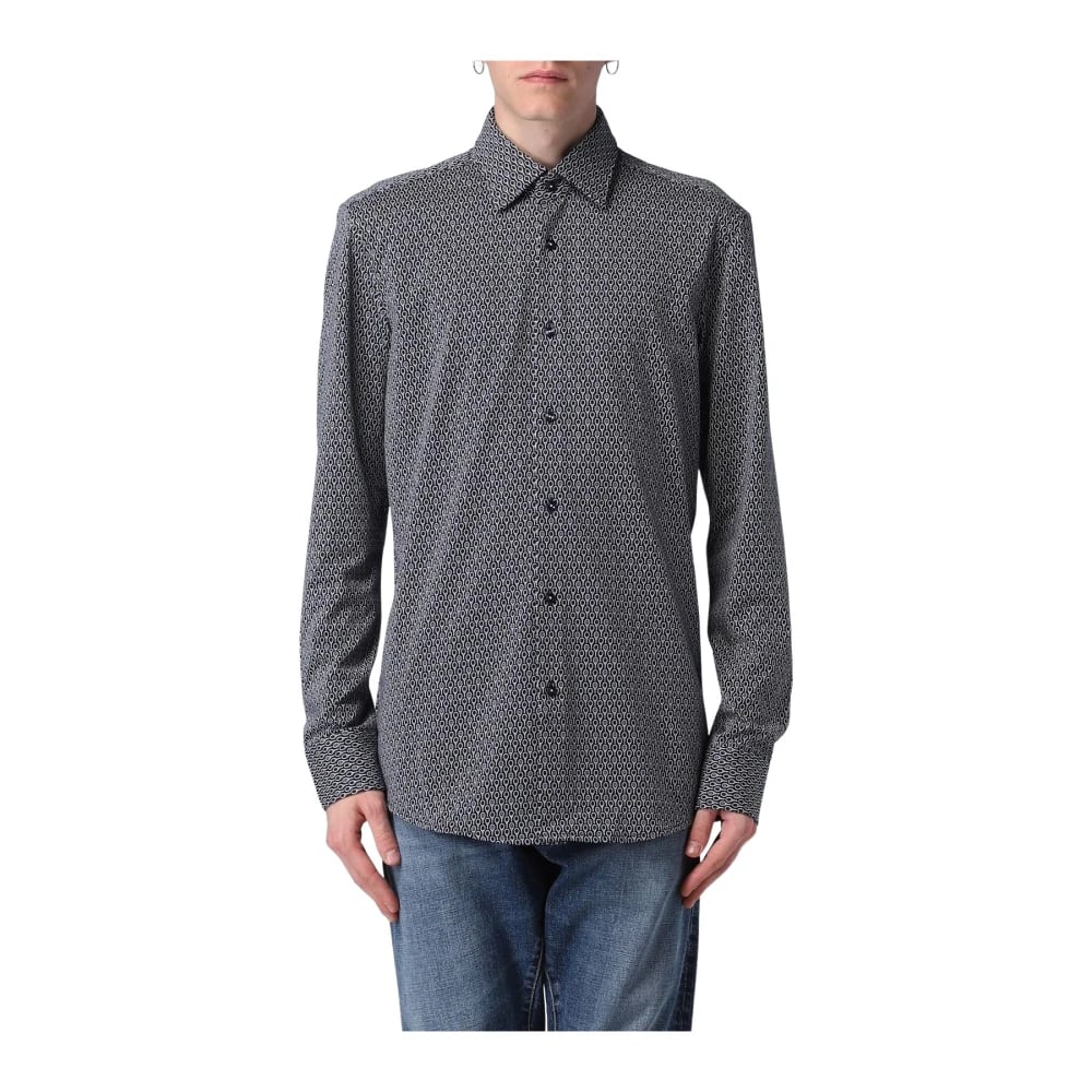 Hugo, Skjortor , Herr, S, Blå Geometriskt Mönster Boss Skjorta