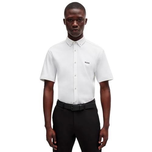 BOSS Herr B Motion Regular Cotton Mesh-skjorta för män, Vit100, XL