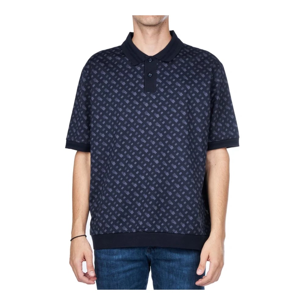 Boss, Toppar , Herr, S, Bomull, Blå Bomull Monogram Polo Skjorta
