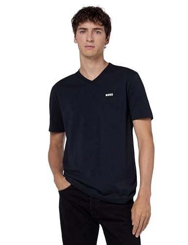 BOSS Herr liten logo bomull V-ringad kortärmad t-shirt skjorta, crisp marinblå, medium