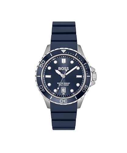 BOSS Three Hand Quartz Movement Watch för män TROPER SPORT Collection med blått silikonarmband - 1514292