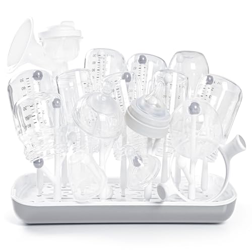 Termichy Babyflaska torkställ med avtagbar vattenbricka, baby torkställning idealisk för flaskor, spenar, koppar, pumpdelar och tillbehör grå