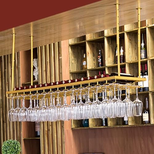 Hanging wine rack with wine glass holder and shelf, adjustable ceiling bar, wine glass holder, gold metal wine and glass holder, iron wine bottle holder(60cm)