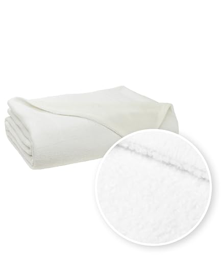 MEYCO Home Bouclé pläd gosig filt (högkvalitativ, mjuk filt, mysig och stil, tillverkad av lyxigt bouclé-tyg, för soffa och säng, 130 x 170 cm), benvit