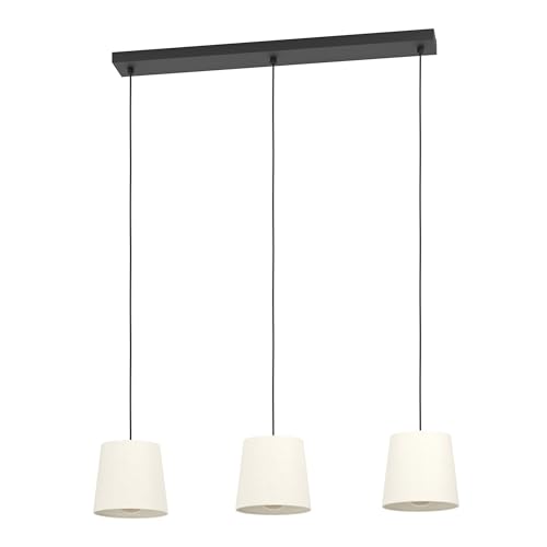 EGLO Febres Hänglampa, Taklampa Över Matbord, Matsalslampa, 3 Lampig, Tillverkad Av Bouclé Tyg, Metall I Svart Och Textil I Vitt, E27 Sockel, 88 Cm