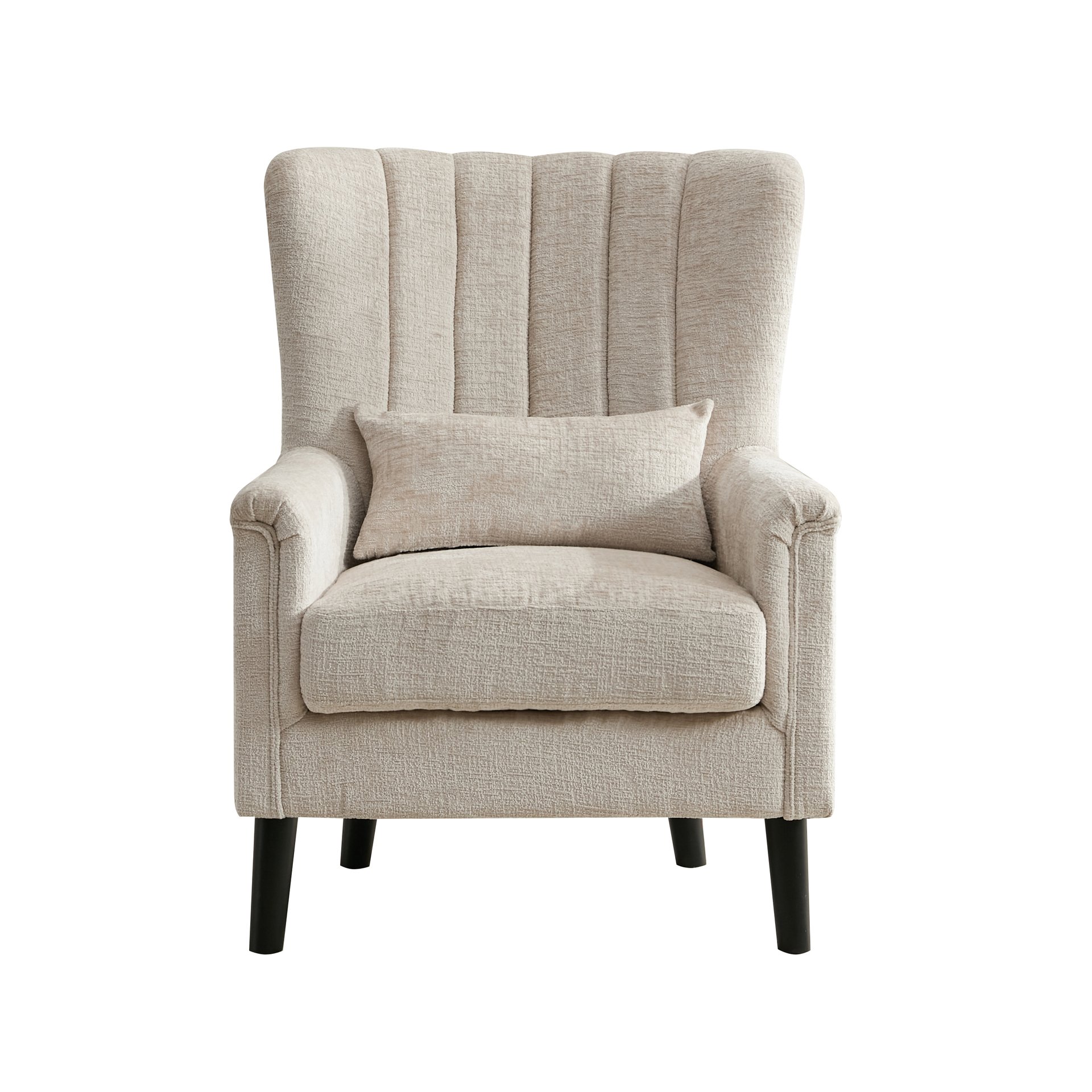 MEUBLE COSY Stoppad fåtölj vardagsrumsstol med armstöd relaxfåtölj med högt ryggstöd och tjock kudde träben för sovrum vardagsrum tyg bouclé beige