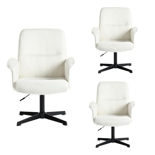MEUBLE COSY Set med 3 Svängbar Kontorsstol Höjdjusterbar Toalettstol Bord Bouclé Tyg Sittbord för Studie Sovrum, Vit, Metall, 66x63x82-94cm, 3 st