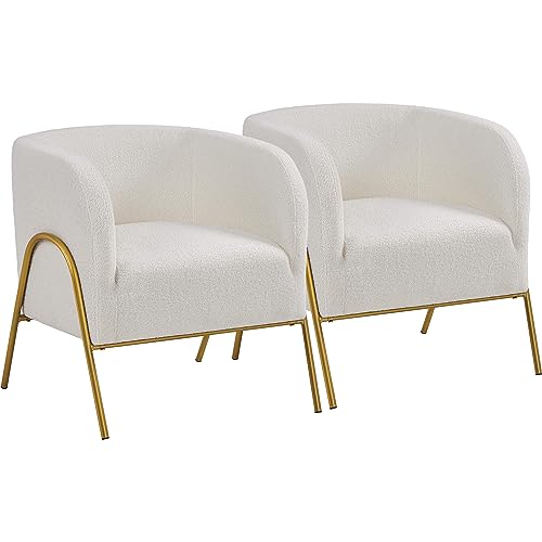 Yaheetech 2 x loungefåtölj, stoppad fåtölj med fatryggstöd, klubbfåtölj med V-formade metallben, snygg fåtölj av Bouclé-tyg, TV-fåtölj